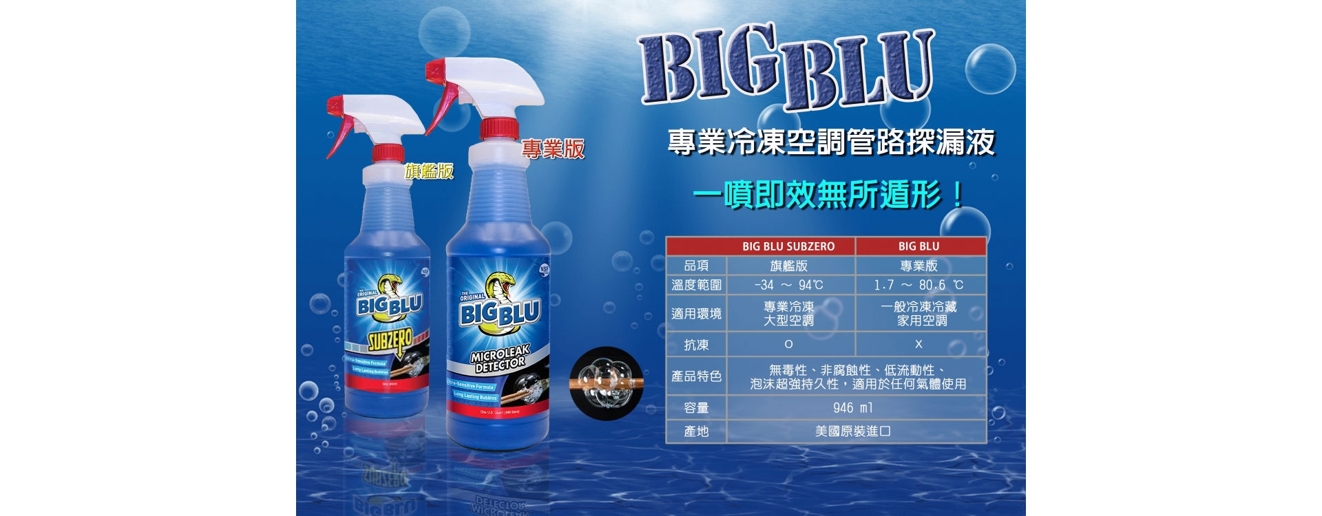 美國進口BIG BLU 探漏液-專業版(1QT)NO.RT100S -