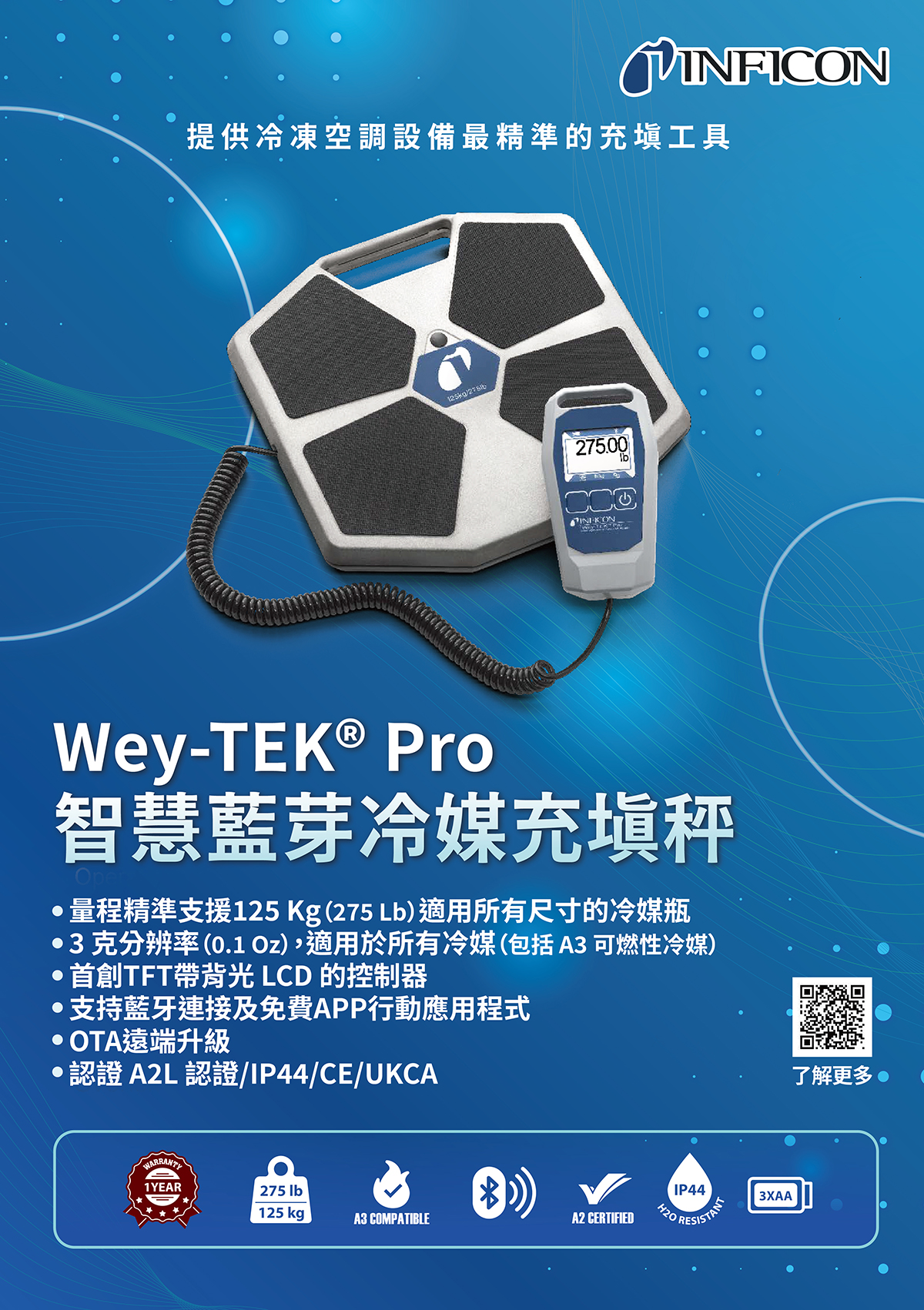 ■3 克分辨率(0.1 Oz),適用於所有冷媒(包括 A3 可燃性冷媒)