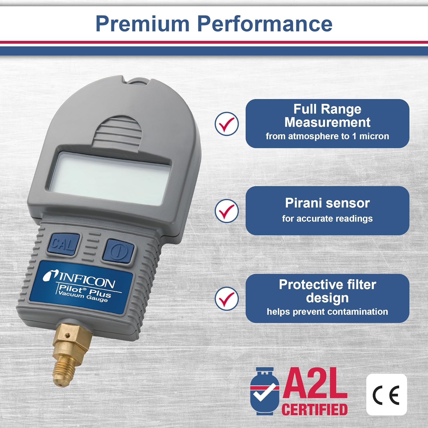 INFICON Pilot Plus 真空計融合了多項創新功能,具有無與倫比的性能。與最初的 Pilot 真空計一樣,其 Pirani 傳感器提供了更高的精度,並且能夠測量從大氣到一微米的整個真空過程。您會立即知道您的連接是否是真空密封的。