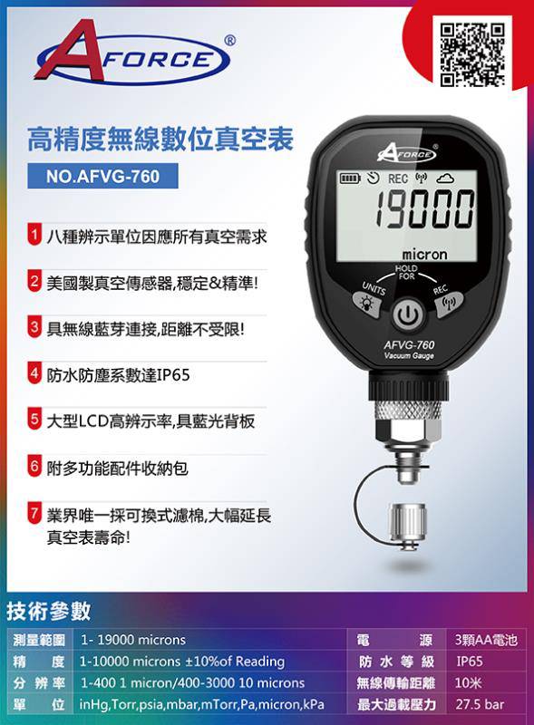 單位:inHg / Torr / psia / mbar / mTorr / pa / micron / kPa
