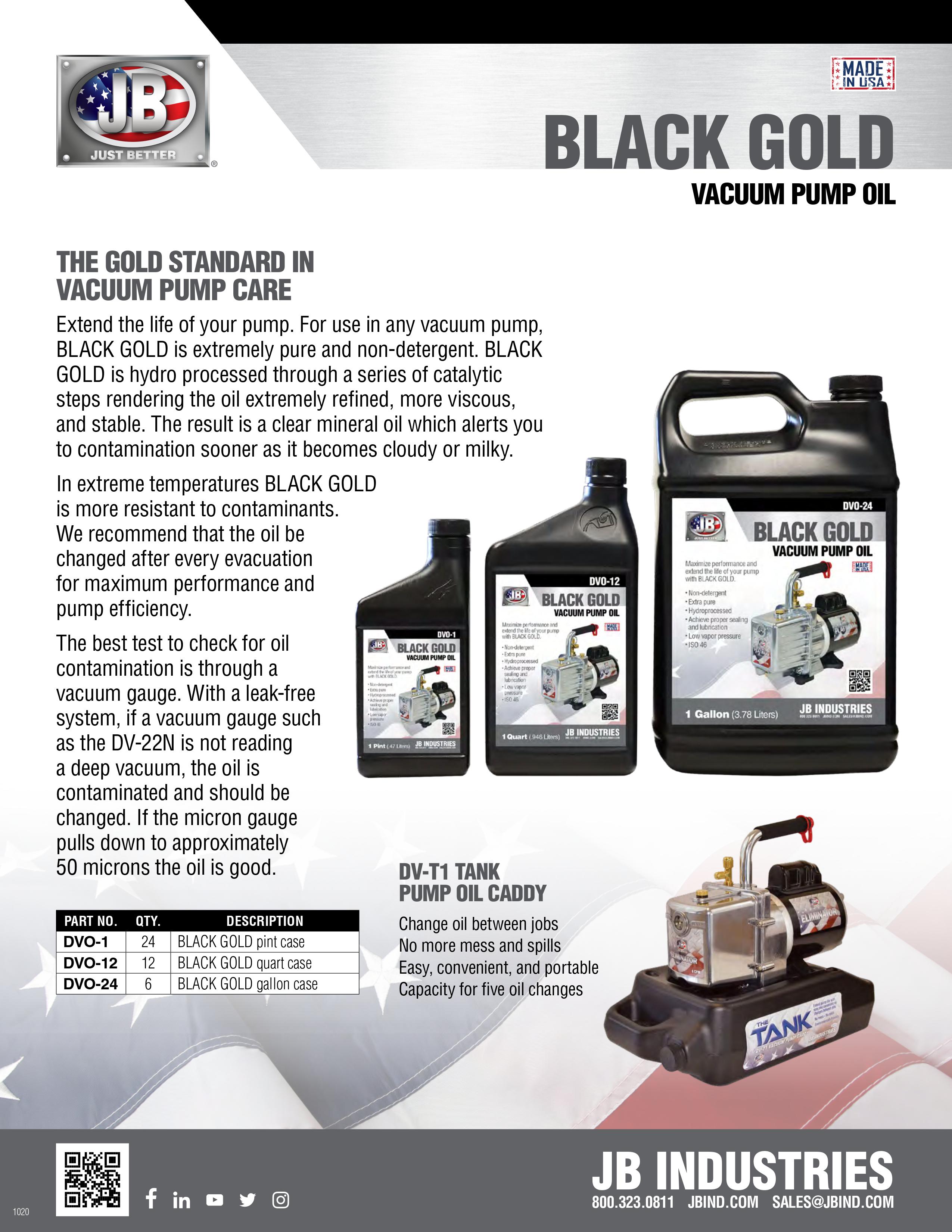 JB INDUSTRIES在生產專業真空機五十年的基礎,提供非常高品質且專業的真空油,